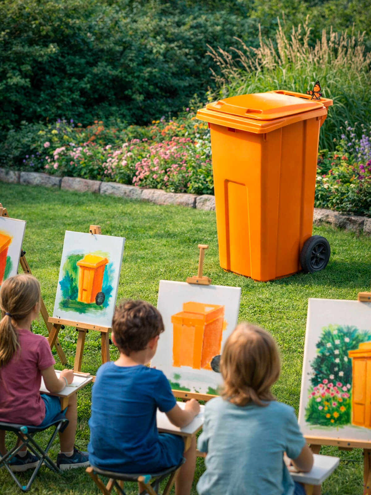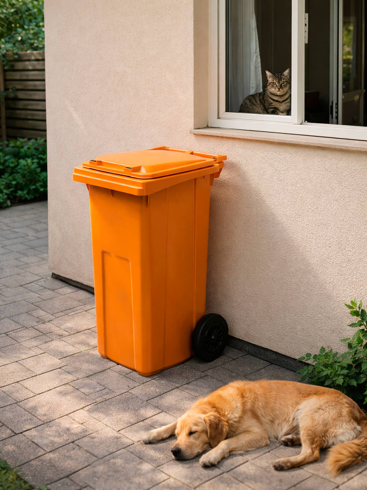 Контейнер для мусора 120 л на колёсах с крышкой, оранжевый — повышенная видимость и системный контроль отходов